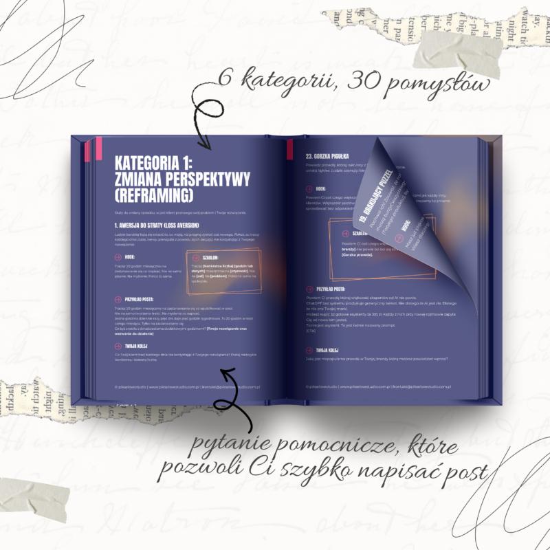 Odkryj 30 sprawdzonych kątów komunikacji, które raz na zawsze rozwiążą problem braku pomysłów na posty! Ten praktyczny ebook to gotowe szablony i przykłady, idealne dla małych firm, które chcą zwiększyć sprzedaż i zaangażowanie w social media. Nigdy więcej pustego ekranu – zacznij sprzedawać dziś!
