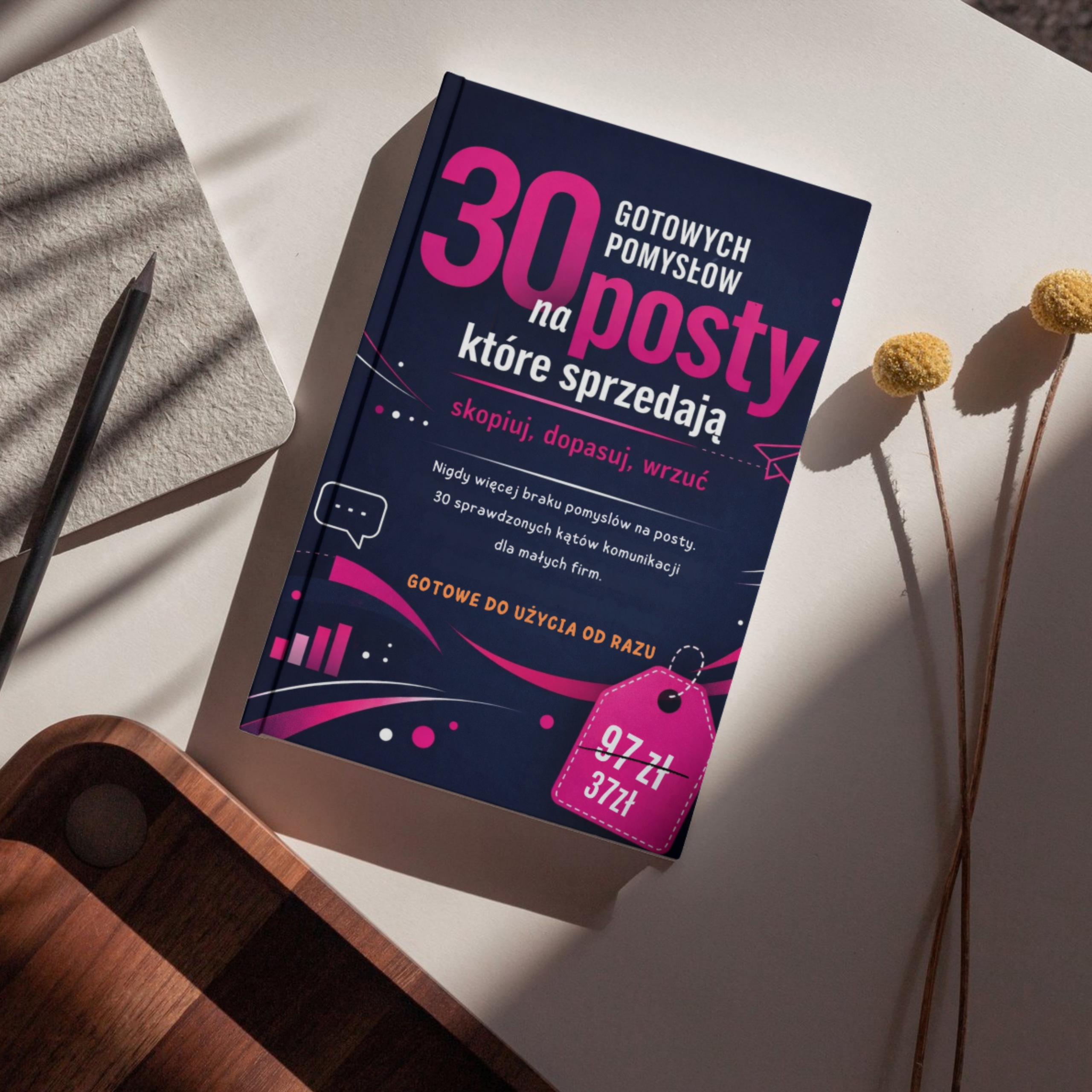 Przedstawiamy “30 Gotowych Pomysłów na Posty, Które Sprzedają – Skopiuj, Dopasuj, Wrzuć” – kompleksowy ebook stworzony z myślą o właścicielach małych firm, freelancerach i przedsiębiorcach, którzy pragną efektywnie komunikować się ze swoimi klientami i znacząco zwiększyć swoje zyski.