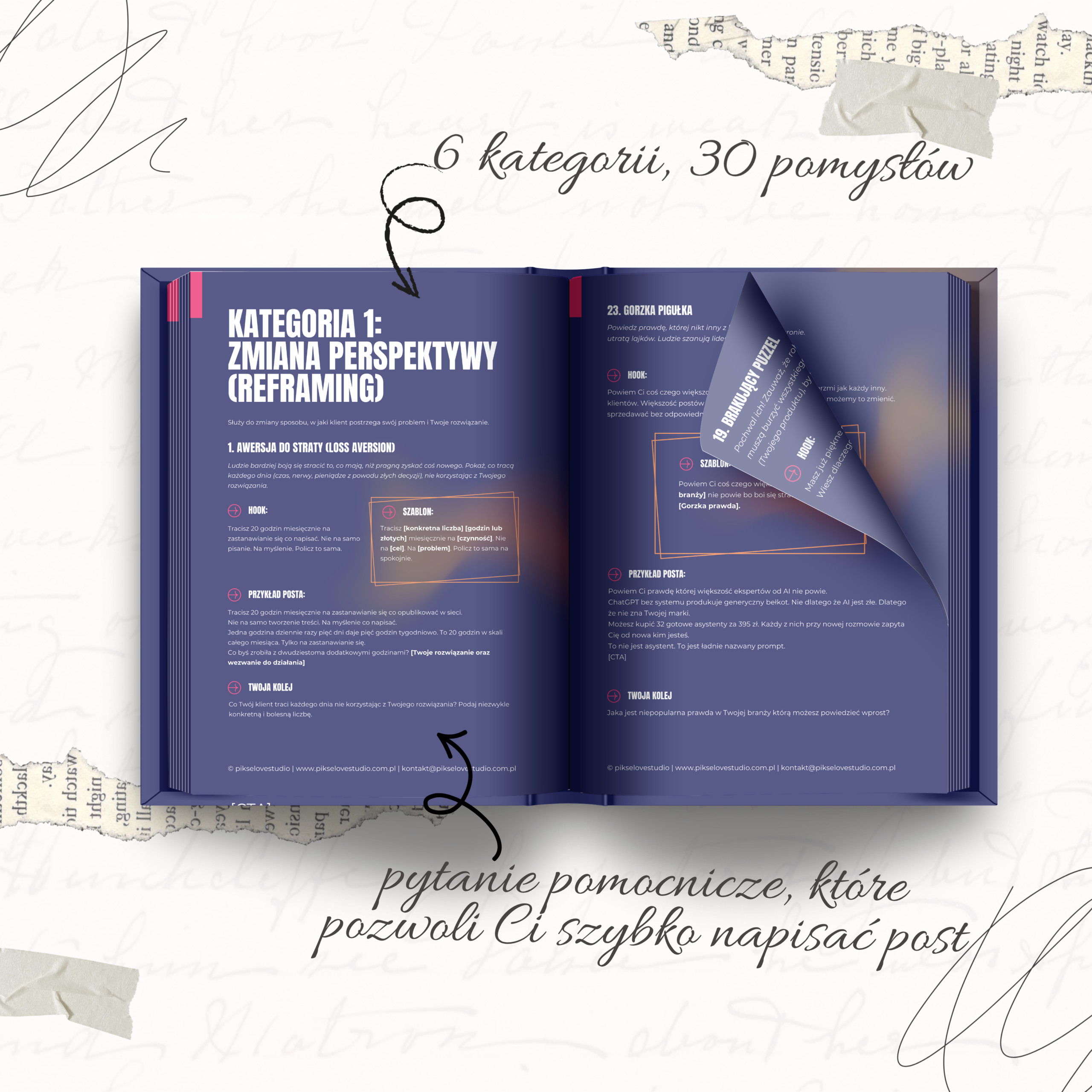 Ten ebook to znacznie więcej niż zbiór luźnych pomysłów. To 30 precyzyjnie opracowanych kątów komunikacji, podzielonych na kategorie, które pomogą Ci:
